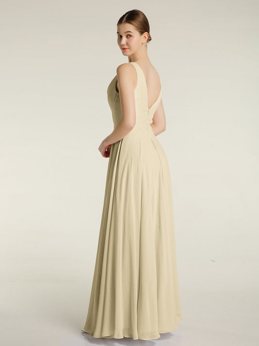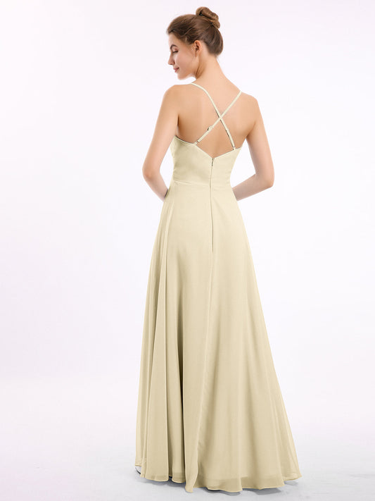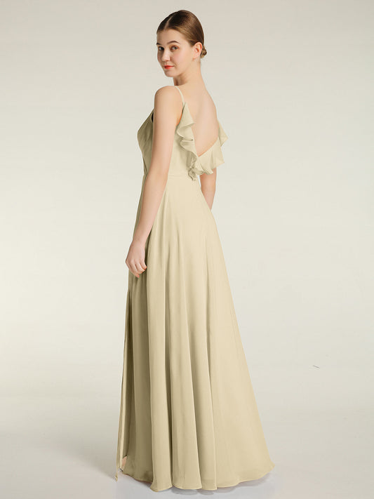 Babaroni TammyVestidos de chiffon con tirantes finos y escote en V Champán