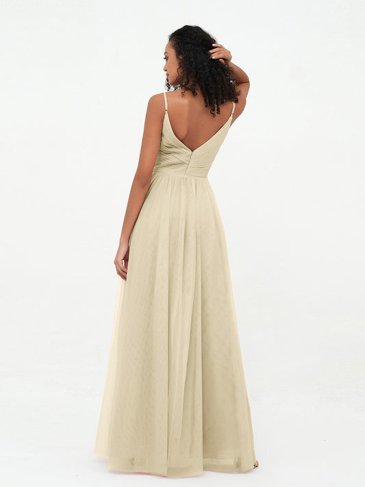 Babaroni MarjorieVestidos largos de tul plisado con tirantes spaghetti Champán