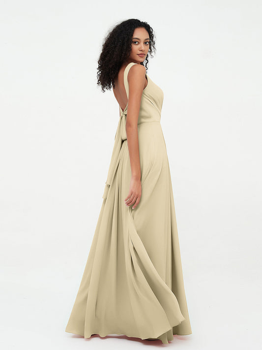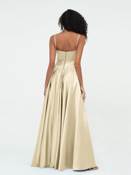 Babaroni MyrnaVestidos máximos de satén estilo A-line con tirantes spaghetti Champán