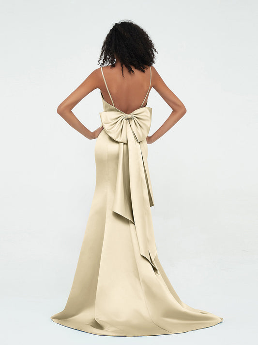 Babaroni MuseVestidos sirena de satén con tirantes spaghetti Champán