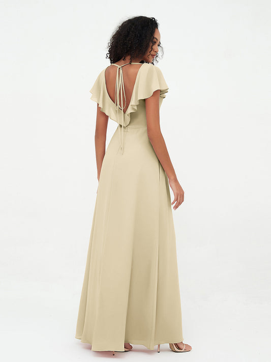 Babaroni VitaVestido de dama de honor de chiffon con escote en V y espalda descubierta Champán