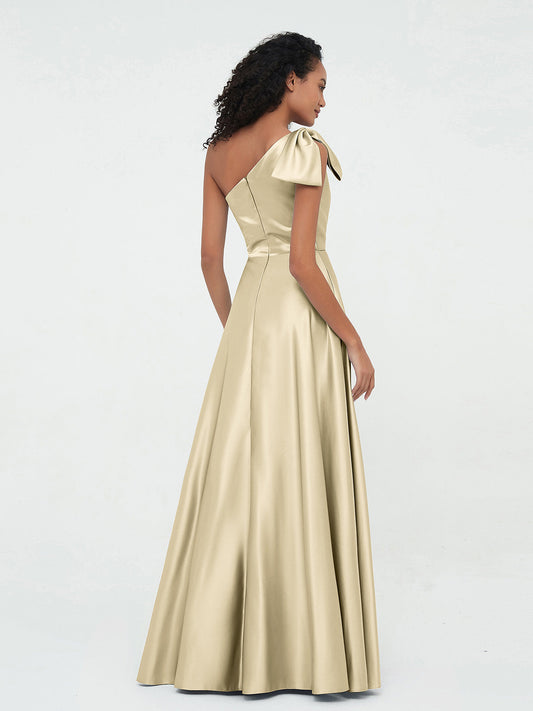 Babaroni PrimroseVestidos largos de satén de un hombro con bolsillos Champán