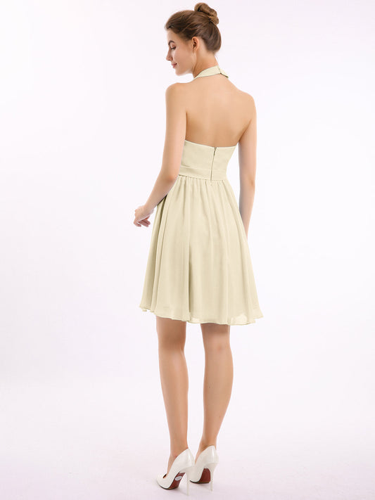 Babaroni SylviaVestidos cortos de dama de honor de chiffon estilo halter Champán