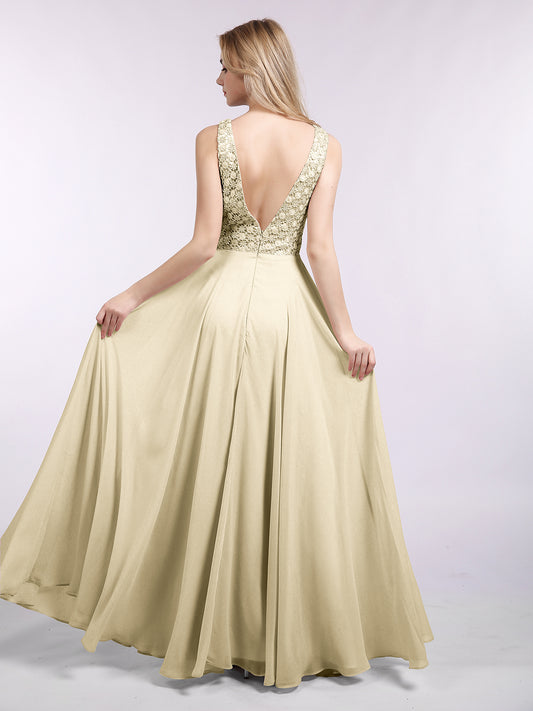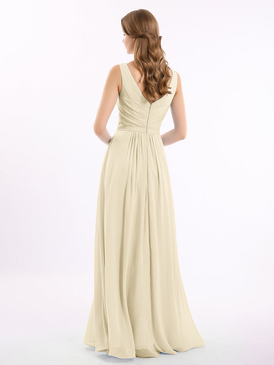 Babaroni GeorgiaGeorgia Escote En V Gasa Largo Vestido De Dama De Honor Champán