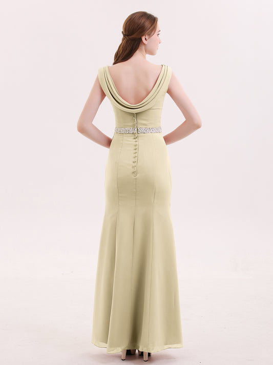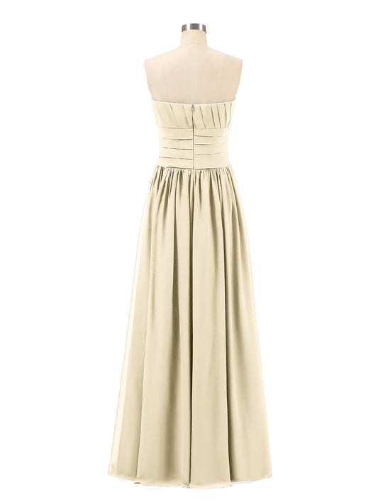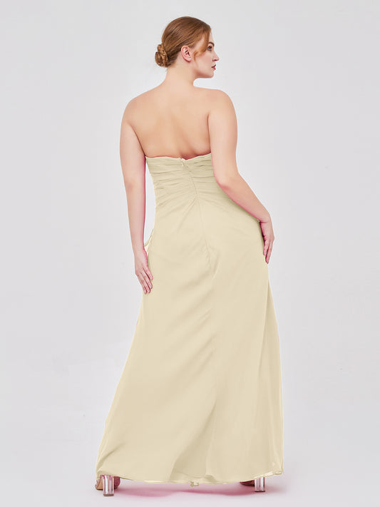 Babaroni FredericaFrederica Sin Tirante Gasa Largo Vestido De Dama De Honor Champán
