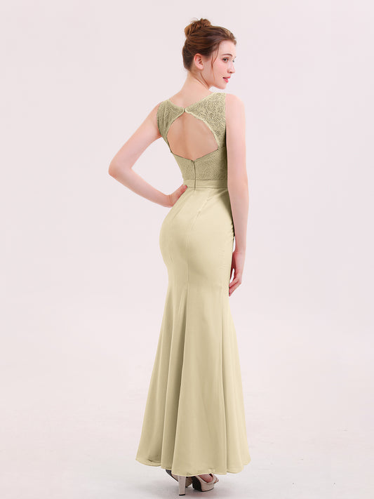 Babaroni GwendolynGwendolyn Encaje Y Gasa Largo Corte De Dama De Honor Champán
