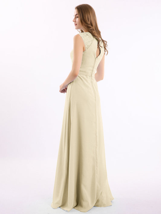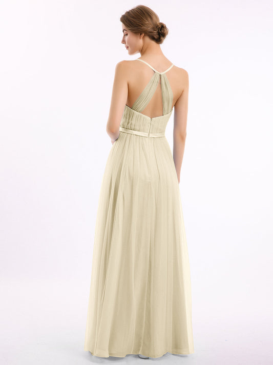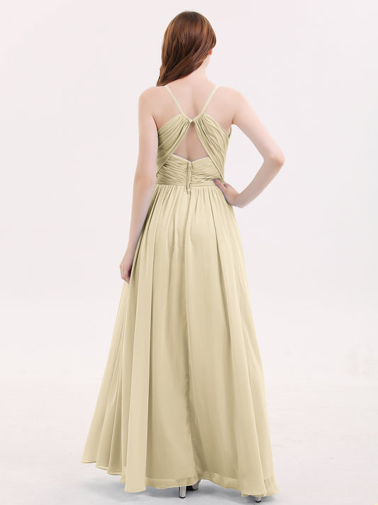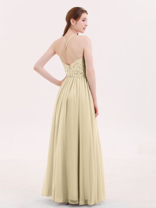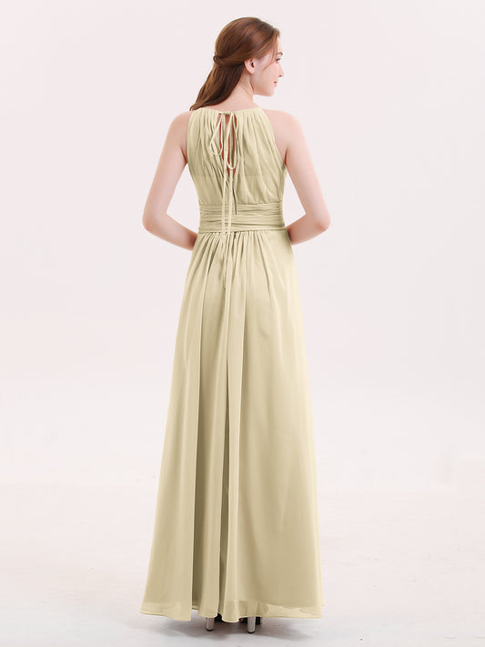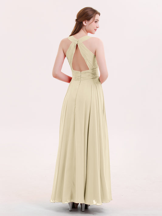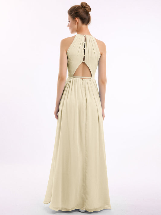Babaroni CynthiaVestidos largos de chiffon estilo halter con espalda descubierta Champán