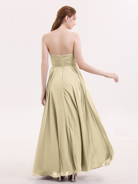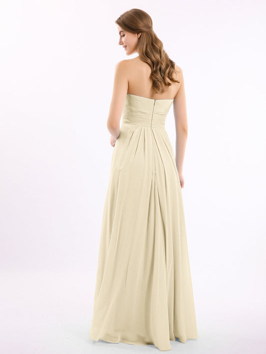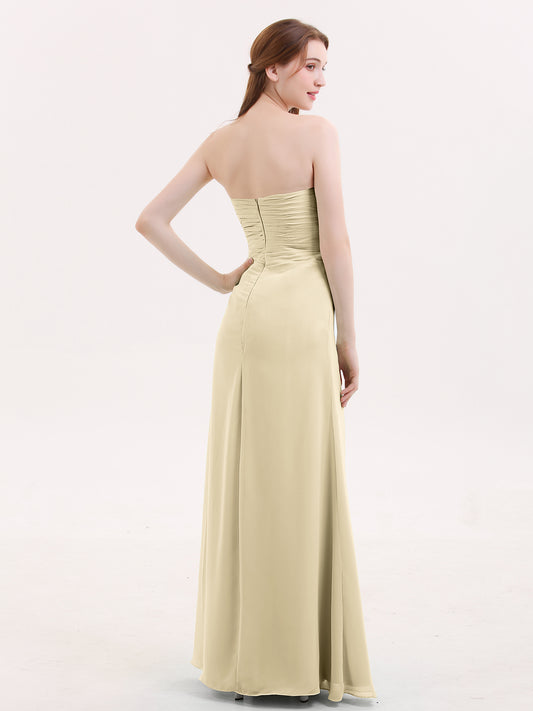 Babaroni AuroraVestidos de chiffon sin tirantes con escote en corazón Champán