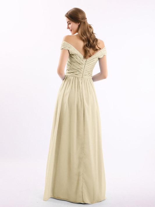 Babaroni VivienVivien Hombro Tirante Encaje Y Gasa Largo Vestido Champán
