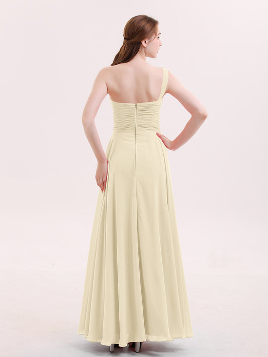 Babaroni YeddaYedda Un Hombro Gasa Largo Corte De Dama De Honor Champán
