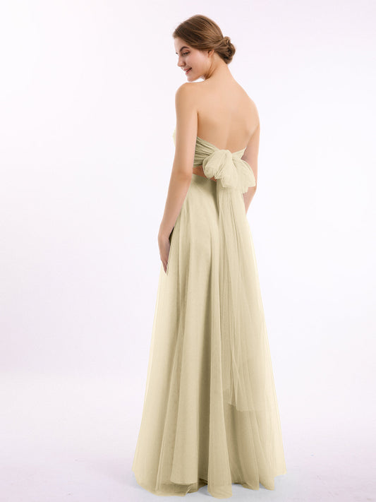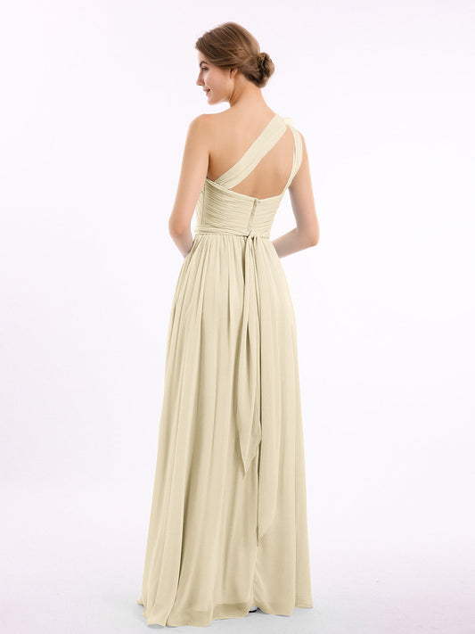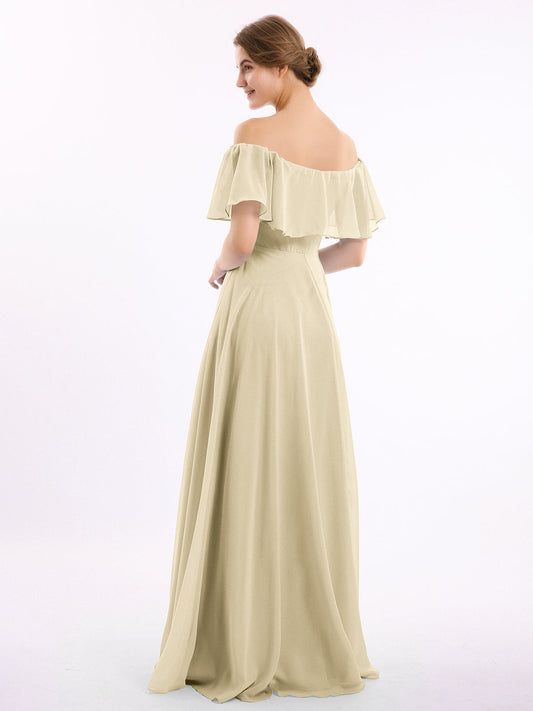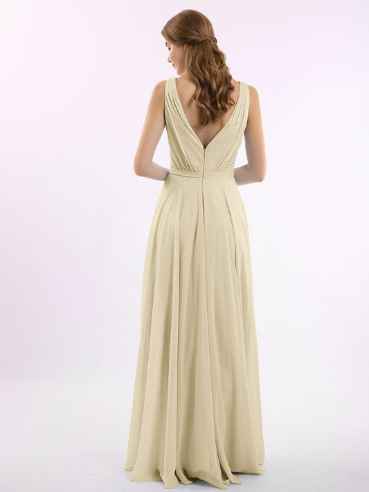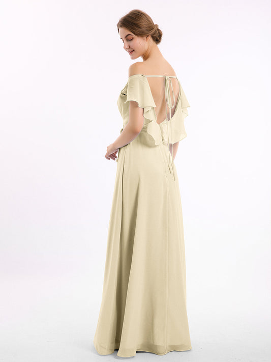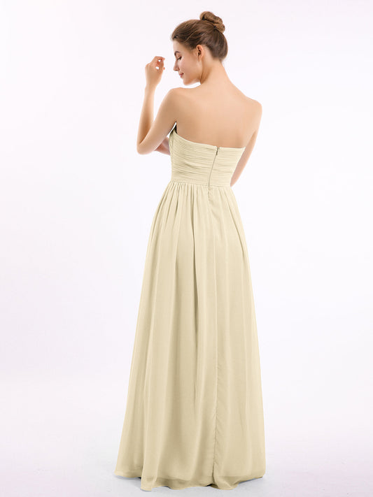 Babaroni NicoleVestidos largos de dama de honor de chiffon sin tirantes Champán