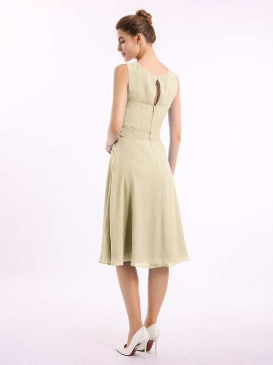 Babaroni IsobelVestido corto de chiffon con cuello tipo scoop y lazo de cinturón Champán