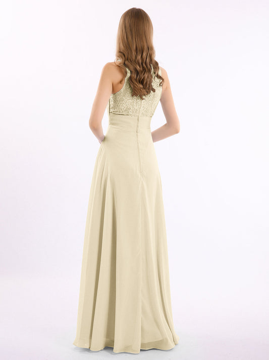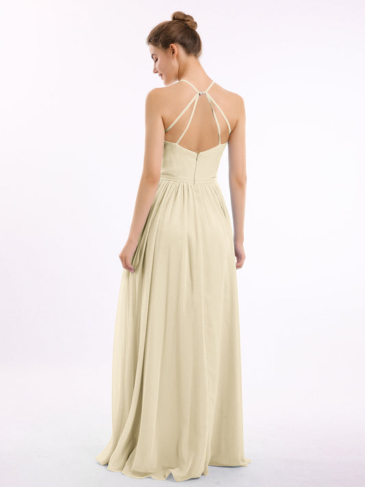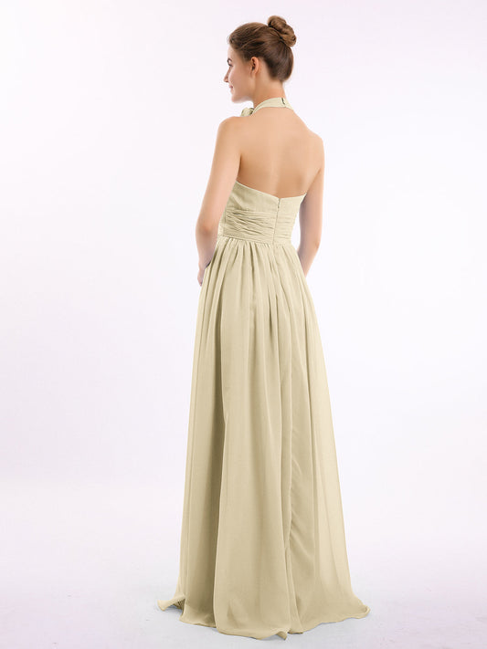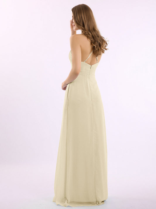 Babaroni LesleyVestidos largos de chiffon estilo halter con doble tirante Champán