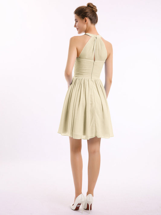 Babaroni KyreneVestidos cortos de chiffon estilo halter para damas de honor Champán