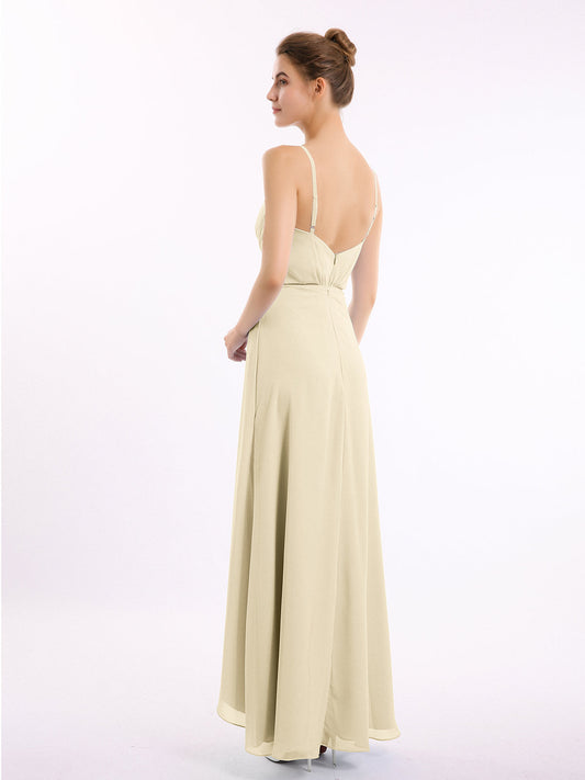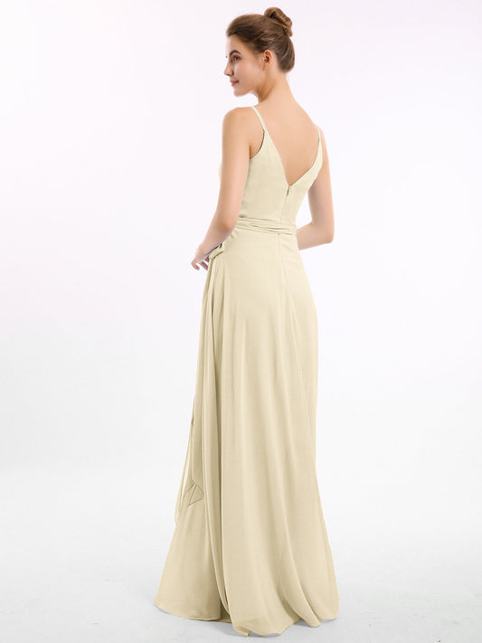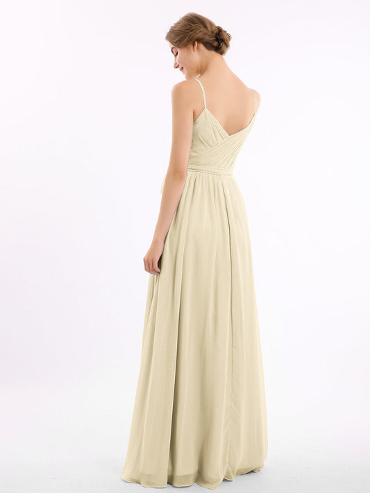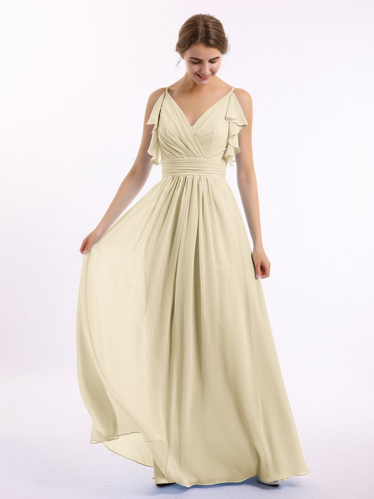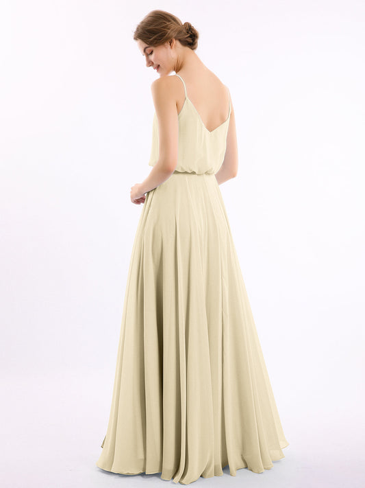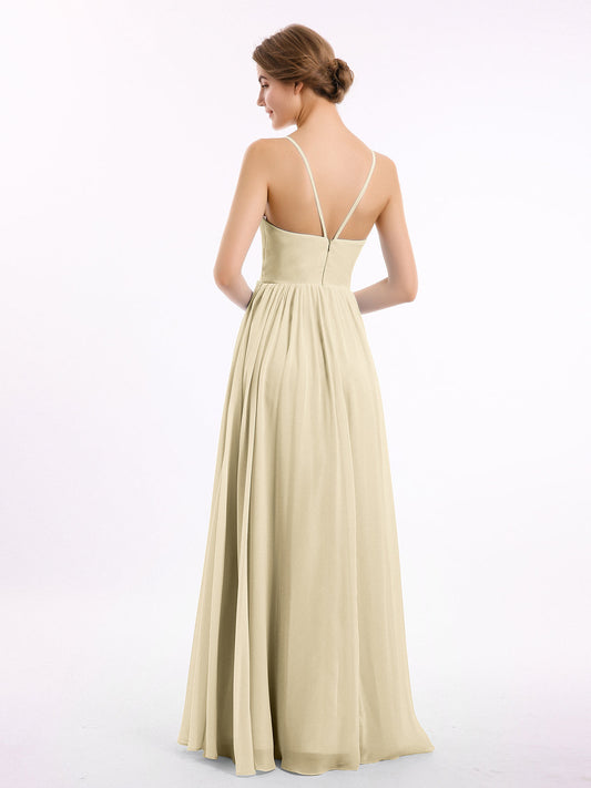 Babaroni VickyVestidos de dama de honor de chiffon con escote en V y tirantes finos Champán