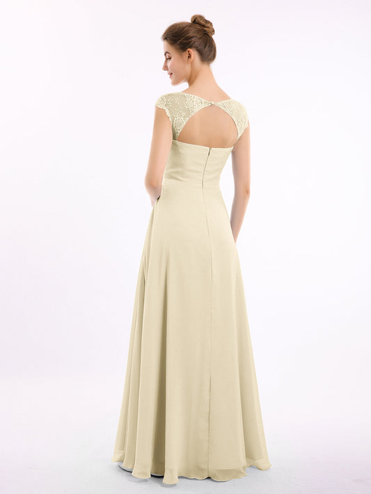 Babaroni MarleyVestidos de dama de honor de chiffon con mangas cap de encaje Champán