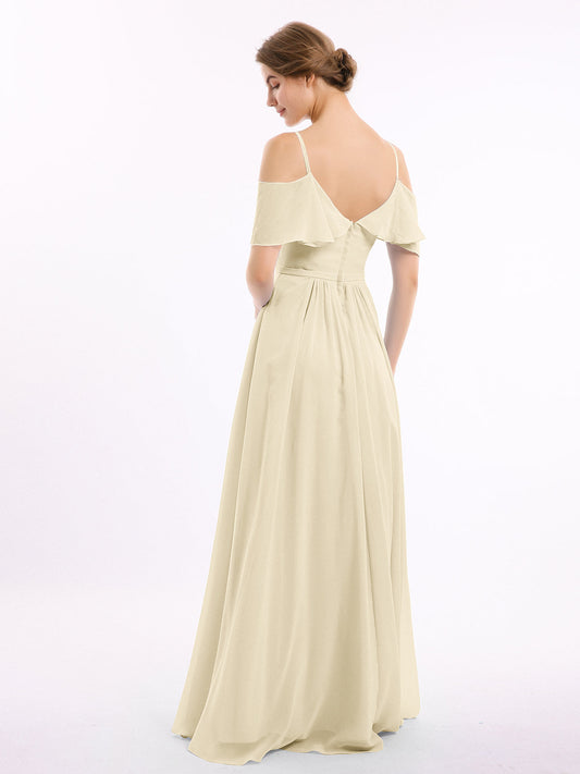Babaroni LouiseVestidos largos de chiffon con tirantes finos en escote en V y bolsillo Champán