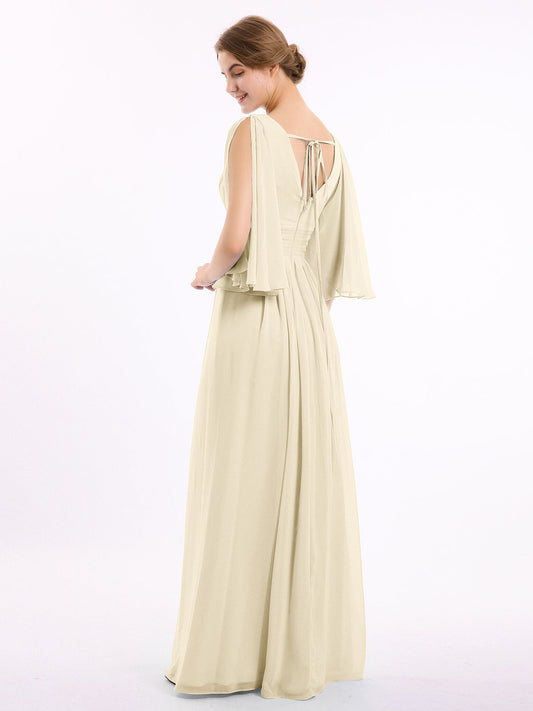 Babaroni SallyVestidos de dama de honor de chiffon con mangas cap y abertura Champán