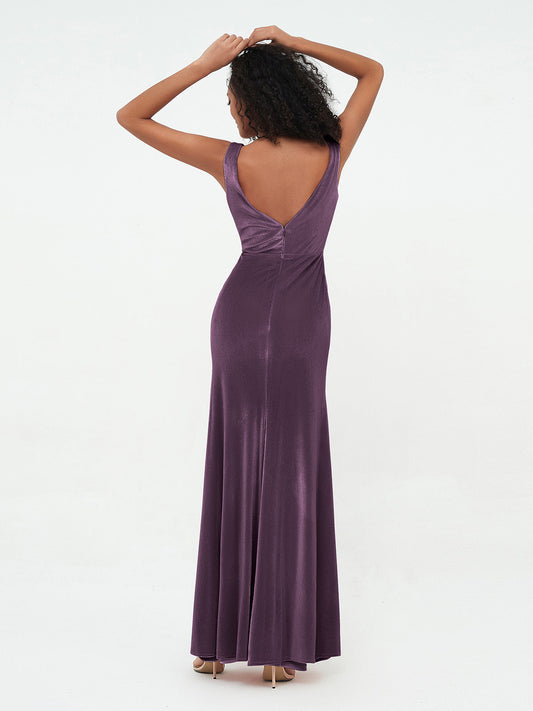 Vestidos largos de terciopelo estilo sirena con cuello barco Ciruela
