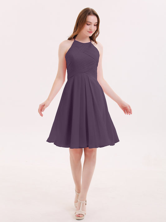 Babaroni OlgaOlga Corto Gasa Vestido De Dama De Honor Con Bolsillo Ciruela