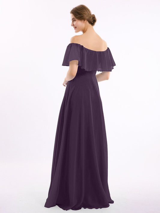 Babaroni HazelVestido largo de chiffon con hombros descubiertos Ciruela