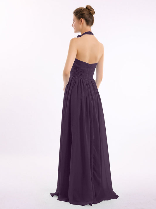 Babaroni LesleyVestidos largos de chiffon estilo halter con doble tirante Ciruela