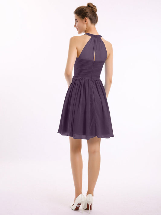 Babaroni KyreneVestidos cortos de chiffon estilo halter para damas de honor Ciruela