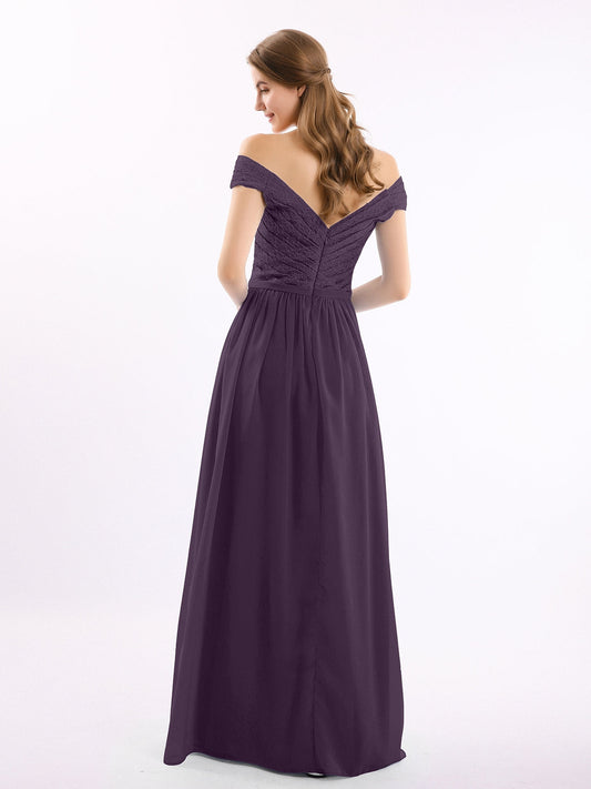 Babaroni LaurenVestidos largos de chiffon estilo princesa con abertura Ciruela