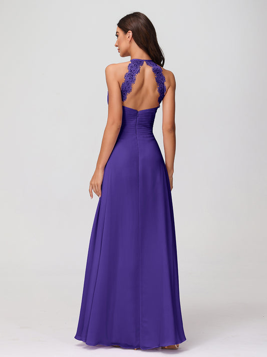 Babaroni AdalynAdalyn Escote En V Gasa Y Encaje Maxi Corte De Dama De Honor Regencia