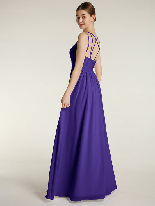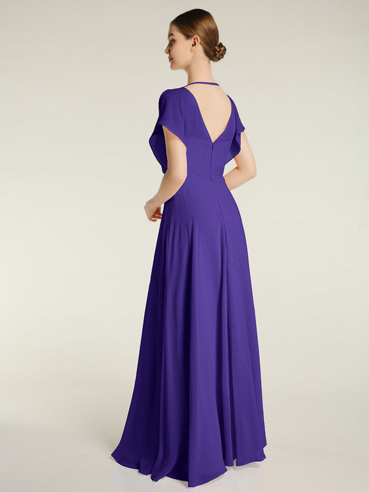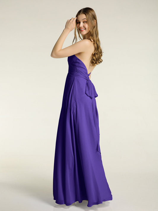 Babaroni MandyVestidos largos de chiffon estilo halter para damas de honor Regencia