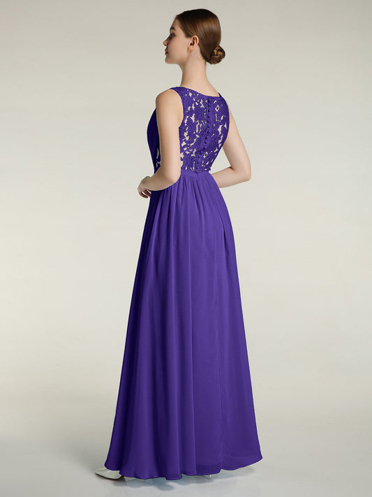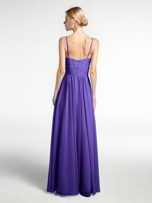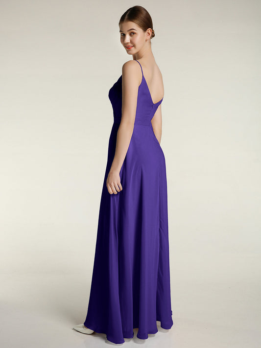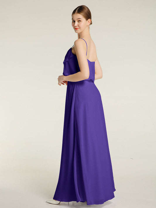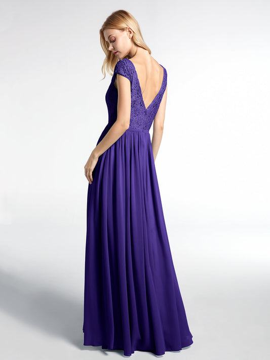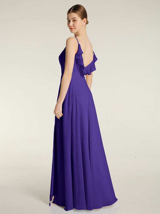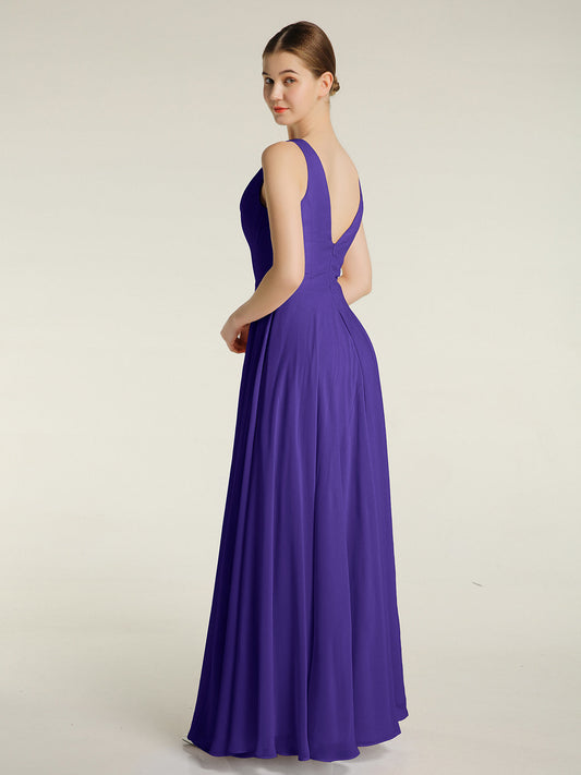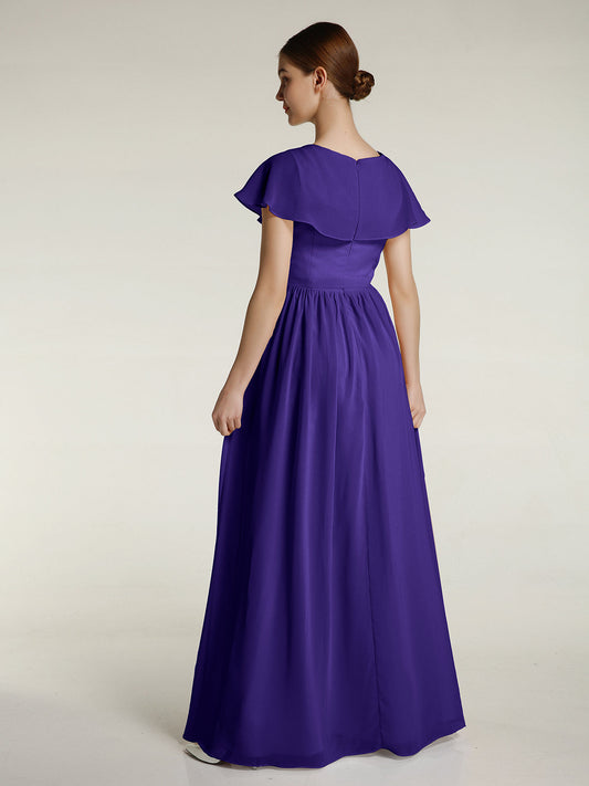 Babaroni MariaVestidos largos de chiffon de cuello en Y para damas de honor Regencia
