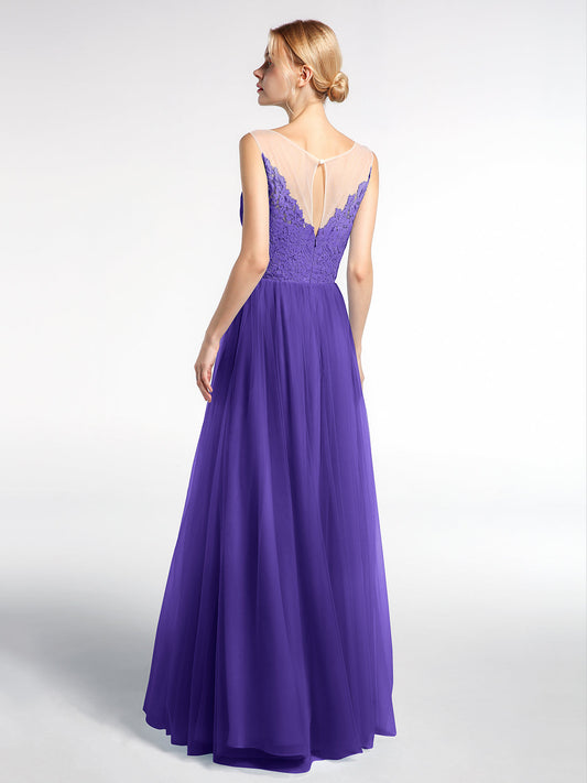 Babaroni TessVestidos de dama de honor de tul cruzado con escote ilusión Regencia