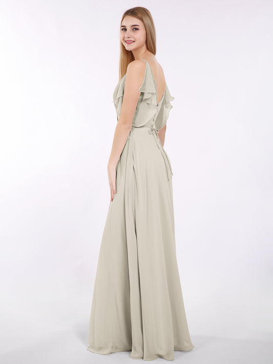 Babaroni GeorgiaGeorgia Escote En V Gasa Largo Vestido De Dama De Honor Topo