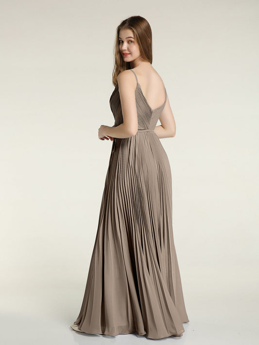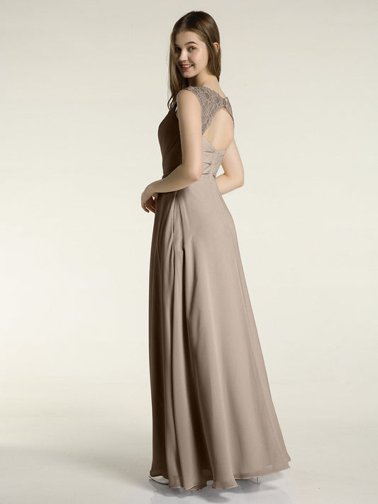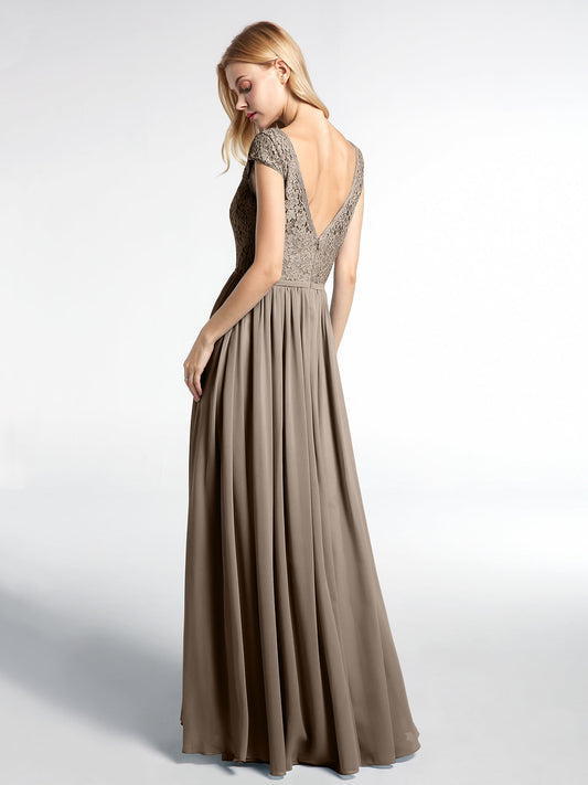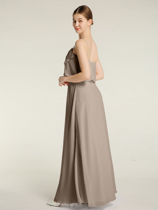 Babaroni MariaVestidos largos de chiffon de cuello en Y para damas de honor Topo