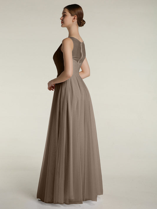 Babaroni LoreleiVestidos largos de tul con escote en V ilusión Topo