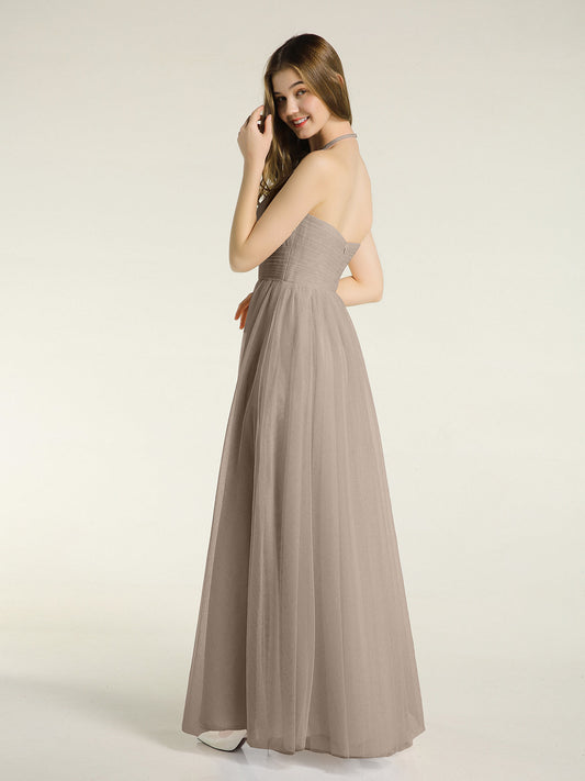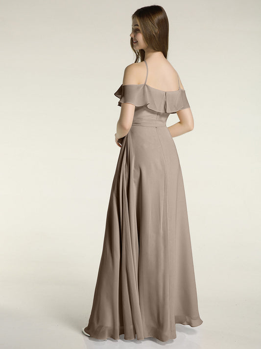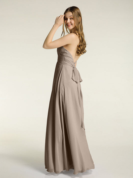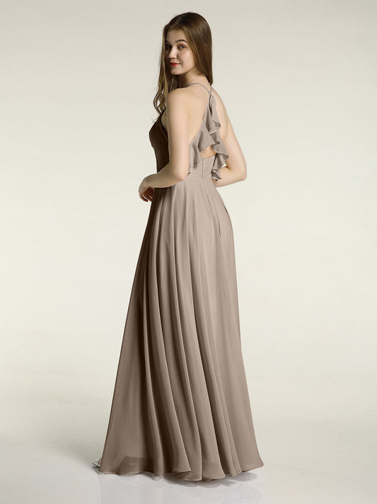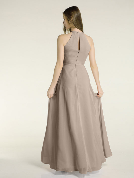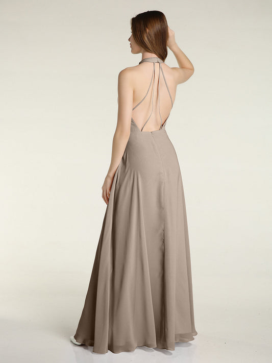 Babaroni MandyVestidos largos de chiffon estilo halter para damas de honor Topo