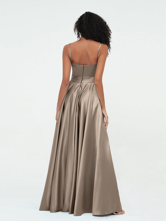 Babaroni MyrnaVestidos máximos de satén estilo A-line con tirantes spaghetti Topo