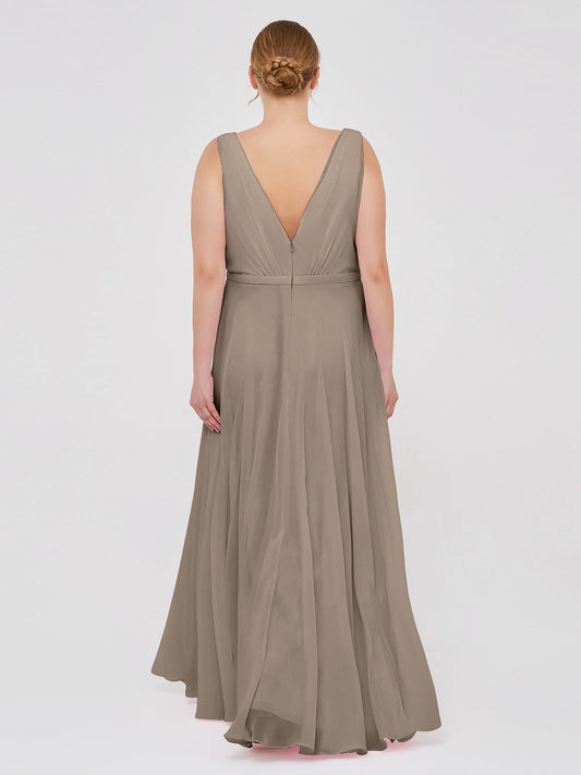 Babaroni NellyVestidos de chiffon con escote en V profundo y abertura Topo