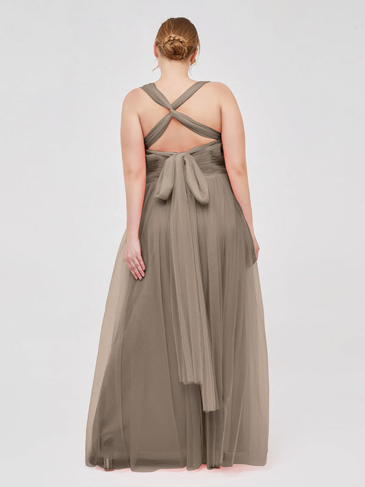 Babaroni EvelynVestidos de tul con espalda convertible y largo hasta el suelo Topo