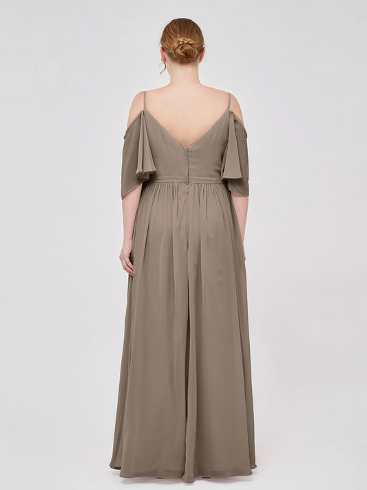Babaroni GailVestidos largos de chiffon con escote en V hasta el suelo Topo