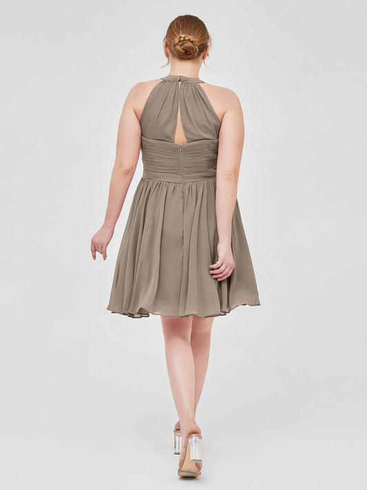 Babaroni KyreneVestidos cortos de chiffon estilo halter para damas de honor Topo