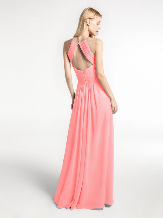 Babaroni IvyVestidos máximos de chiffon estilo halter con hombros descubiertos Flamenco