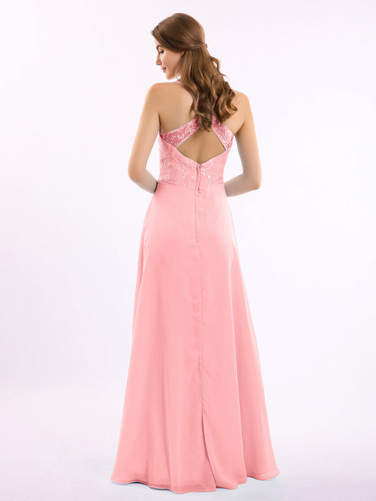 Babaroni LucilleVestidos largos de chiffon con encaje en escote en V profundo y espalda descubierta Flamenco