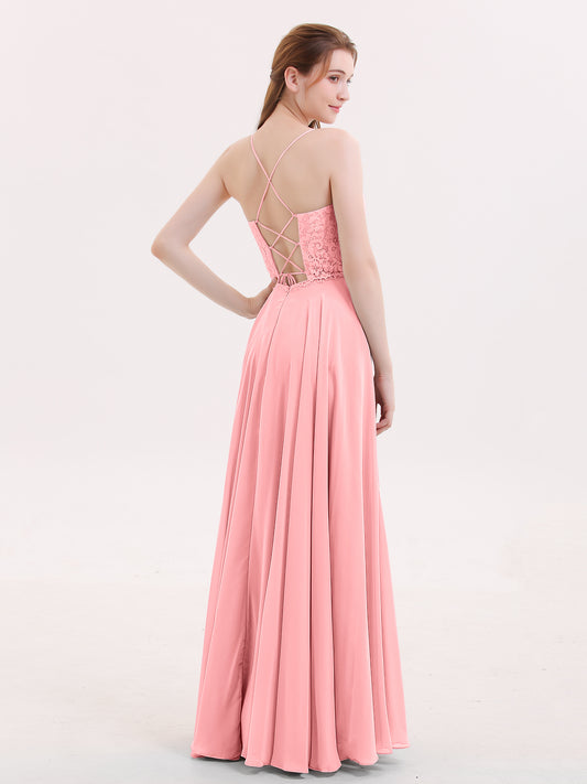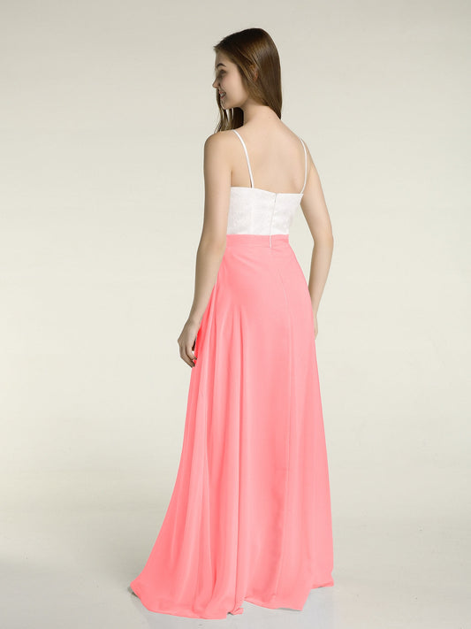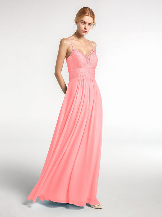 Babaroni CherryVestidos largos de encaje y chiffon con tirantes finos Flamenco