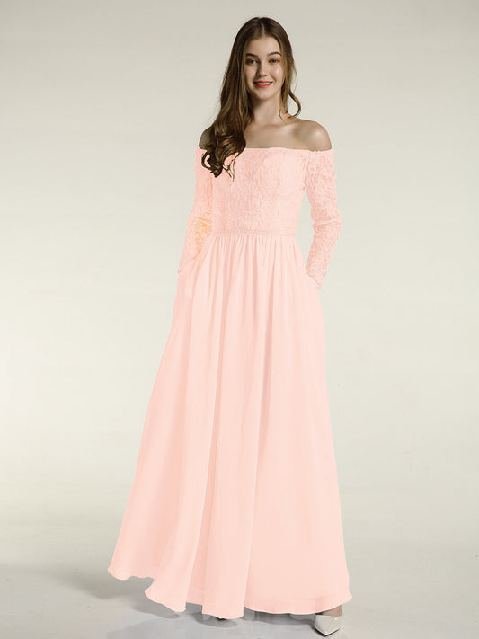 Babaroni MeilaniVestidos de encaje y chiffon con mangas largas y bolsillos Flamenco