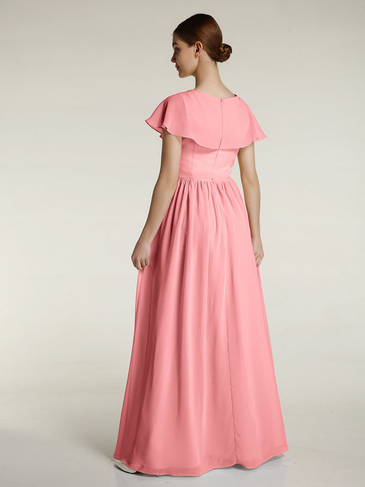 Babaroni GemmaVestidos largos de chiffon con mangas cap y abertura Flamenco