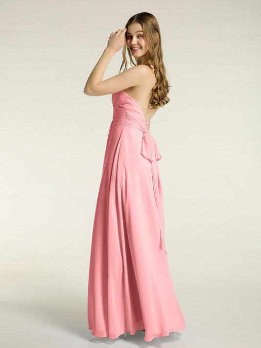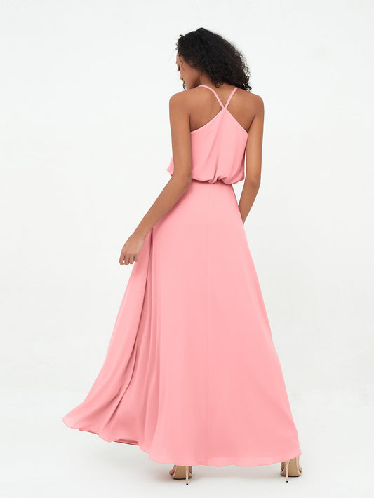 Babaroni MandyVestidos largos de chiffon estilo halter para damas de honor Flamenco