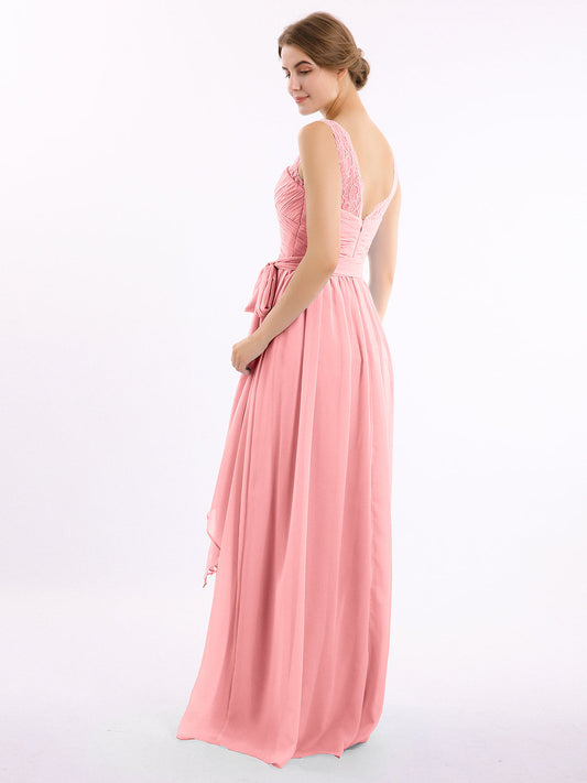 Babaroni LindaVestidos largos de chiffon con tirantes de encaje y lazo de cinturón Flamenco