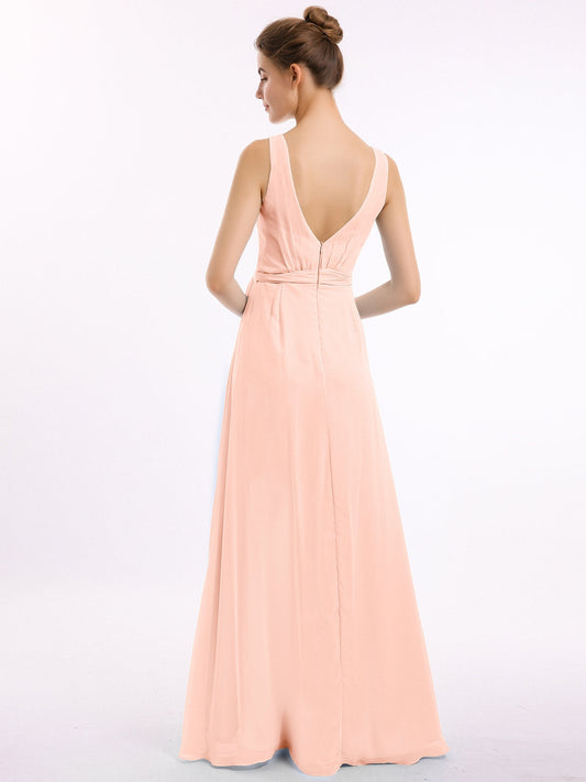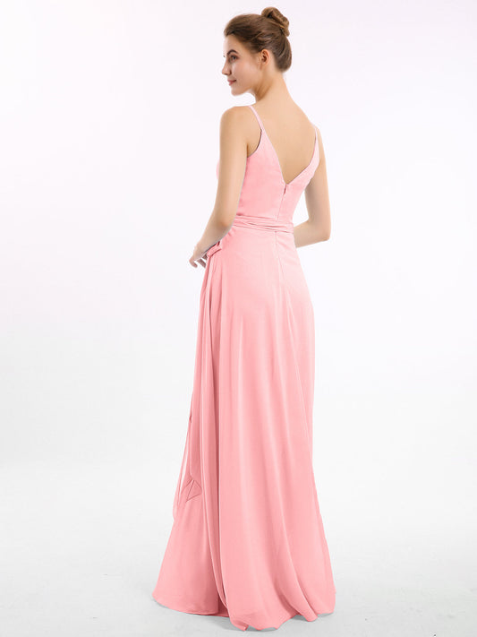 Babaroni LeeVestidos de dama de honor de chiffon con tirantes spaghetti y escote en V Flamenco
