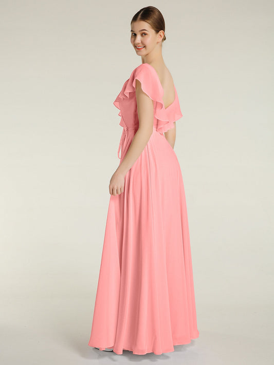 Babaroni LaurenVestidos largos de chiffon estilo princesa con abertura Flamenco